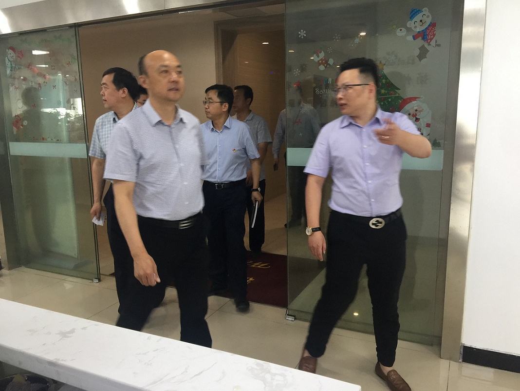 2019年7月1日上午,揚州市廣陵區常務副區長王峰、廣陵區發改委徐質然主任及相關領導蒞臨揚州青銳網絡參觀考察指導。