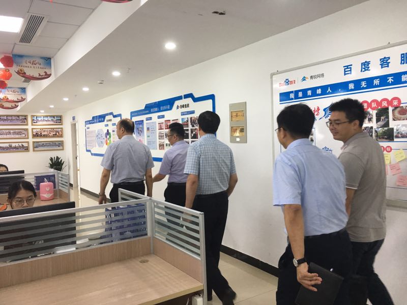揚州青銳網絡總經理沈青先生熱情接待來訪領導,向到訪的各位領導介紹揚州青銳的基本情況以及企業文化建設等工作,并帶領來訪領導參觀了公司辦公環境及深入工作現場視察各項工作。